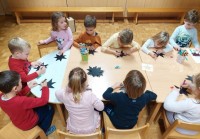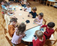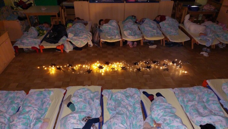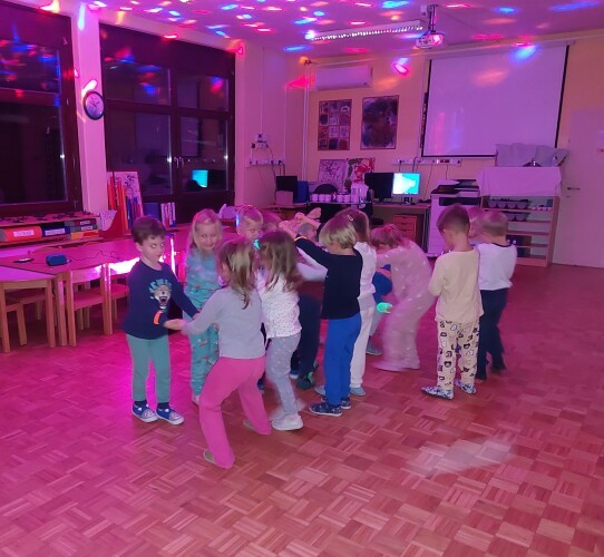 Večerne urice v vrtcu nam je popestrilo iskanje palčka Piskalčka, ki je ravno ta dan prespal v našem vrtcu. Čeprav smo ga prebudili iz spanja, je z veseljem z nami delil svoje dogodivščine. Da je bil večer še bolj pester in zanimiv, smo si pripravili pižama parti, ki je trajal pozno v noč. V prijeten spanec nas je popeljala pravljica pod »Zvezdnatim nebom«.