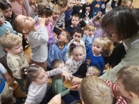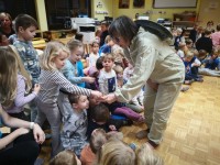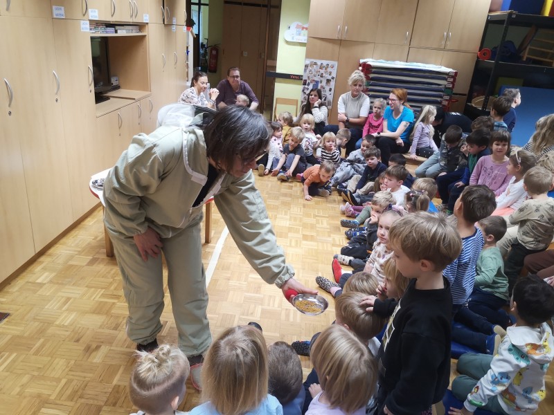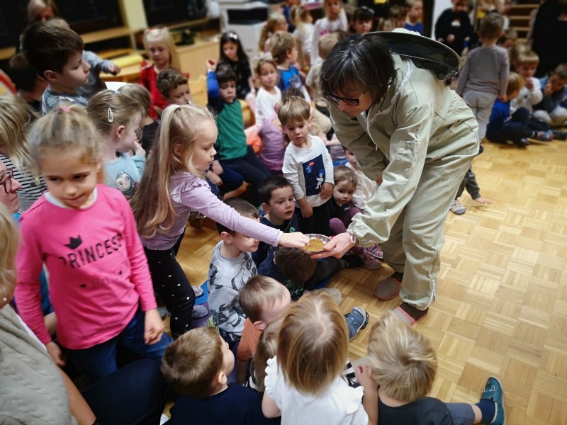 Obiskala nas je čebelarka, ki nam je na zanimiv in prijazen način predstavila življenje čebel. Otroci so si ogledali pravo čebelarsko opremo, spoznali, kako nastane med, ter izvedeli, zakaj so čebele tako pomembne za naravo. Skozi igro in pogovor so se naučili tudi, kako lahko sami pomagamo čebelam. Obisk je bil poučen, sladek in poln navdušenja!