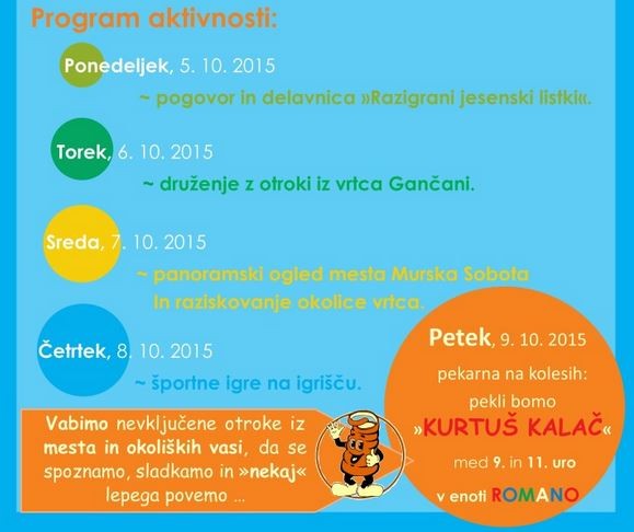 V tednu otroka tudi enota Romano odpira svoja vrata, zato vabljeni vsi, ki si želite naš vrtec in naše delo pobližje spoznati. Vam jezikovna in kulturna različnost predstavljata izziv? Če da, potem nas obiščite.