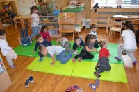 - Ga. Silva Nemeš iz CZRS je otrokom prinesla blazine za telovadbo.