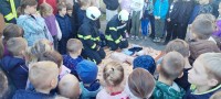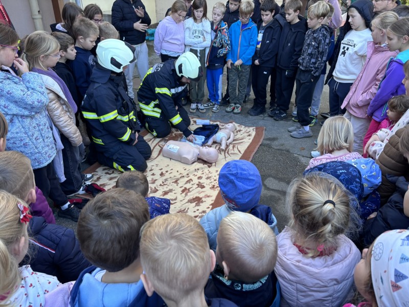 Po uspešno izvedeni evakuaciji so nam o gasilci Prostovoljnega gasilskega društva Krog, na zanimiv in poučen način predstavili svoje delo. Otroci so z navdušenjem opazovali gasilsko opremo, spoznavali gasilsko obleko, čelado, cevi in orodje, si ogledali gasilsko vozilo. Prisluhnili smo tudi predstavitvi osnov oživljanja, kjer so otroci spoznali, kako lahko tudi sami pomagajo.