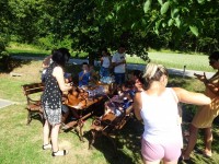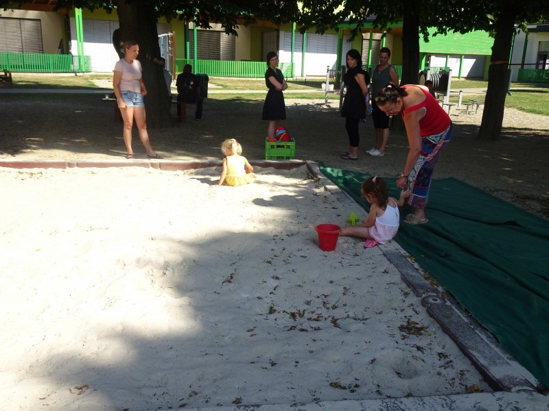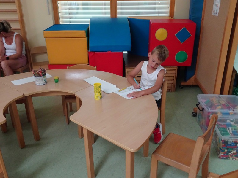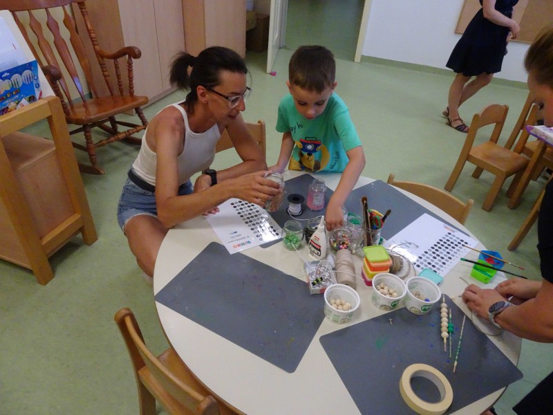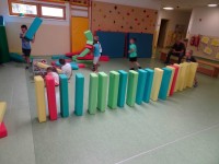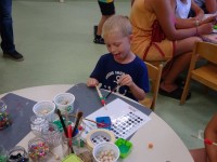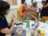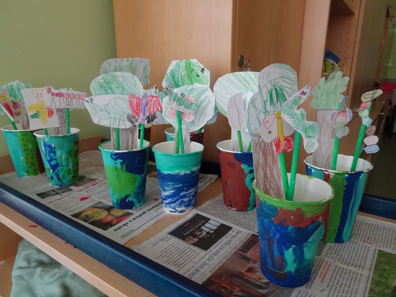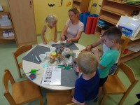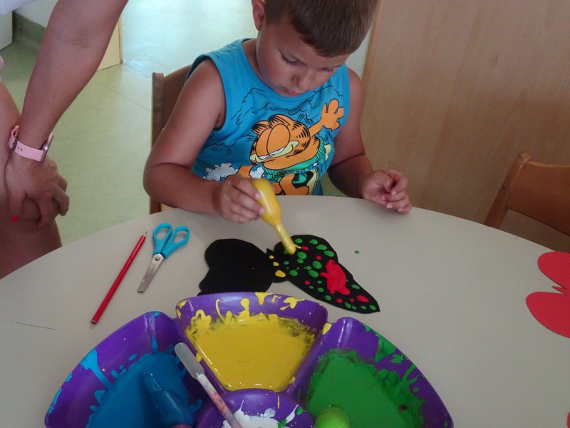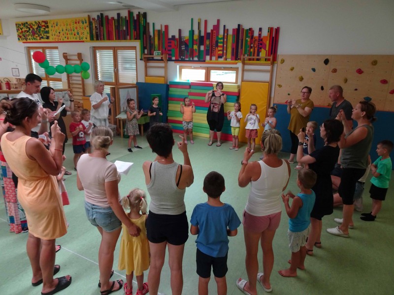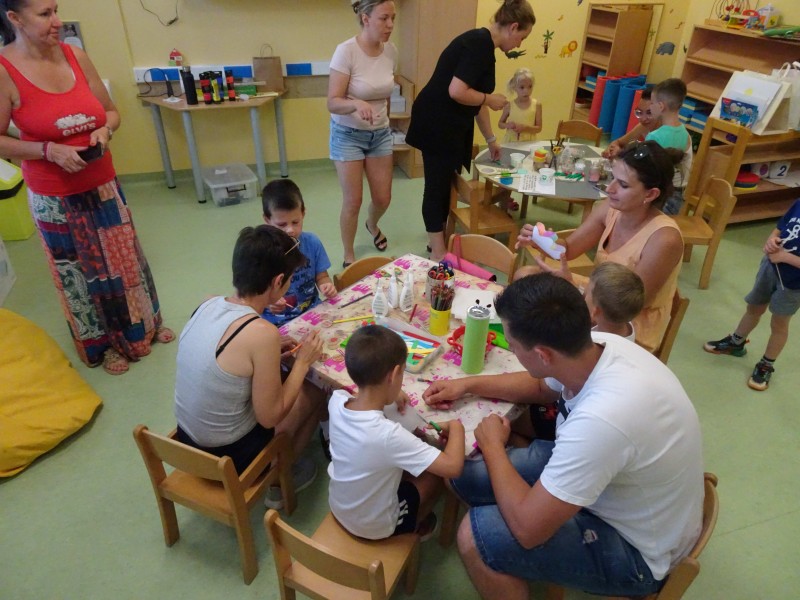 Po skupnem zajtrku smo dan pričeli s petjem in plesom, nato pa smo se pozabavali na vrtčevskem igrišču. Delavnic in skupne igre na vrtčevskem igrišču, so se udeležili tudi otroci iz enote Gozdiček. V ustvarjalnih delavnicah smo skupaj barvali, rezali, lepili ter se poigrali z različnimi materiali. Po kosilu in aktivnem počitku, smo se odpravili v Doživljajski park Vulkanija.
