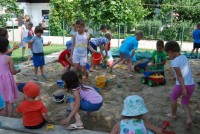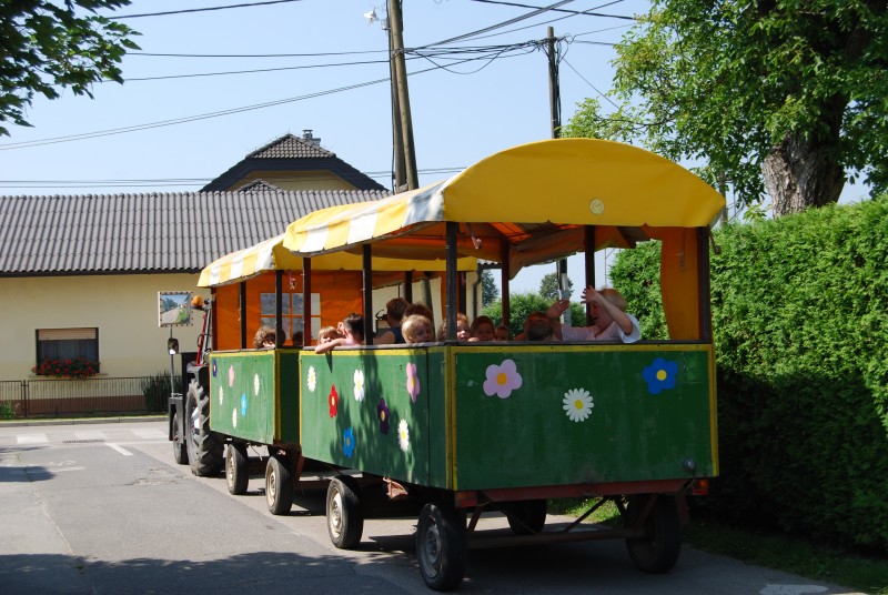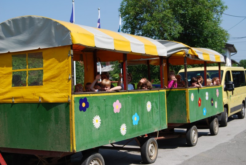 Prijatelji iz enote Veverička so za nas pripravili svojevrstno presenečenje. Na obisk so se pripeljali z vlakcem in tako omogočili tudi nam, da smo se popeljali po ulicah Kroga. Prav zato, ker so nas presenetili z obiskom, je bilo veselje otrok in tudi strokovnih delavcev nepopisno in neponovljivo.