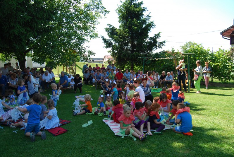 V življenju otroka igrajo poleg staršev pomembno vlogo tudi stari starši. Pogosto so tisti, ki priskočijo na pomoč mladim družinam pri varstvu in vzgoji njihovih otrok. Da bi jim pokazali, kako pomembni so v življenju vnukov, smo jih povabili v svojo družbo. Izkoristili smo sončen dan in druženje pripravili na prostem. Otroci vseh treh skupin so jim predstavili delček programa nedavne prireditve Vrtca Murska Sobota Sončni vrtiljak, jih razveselili z darilci, nato je sledilo sproščeno druženje ob prijetnem klepetu in igri razposajenih otrok.