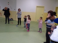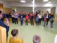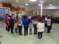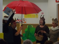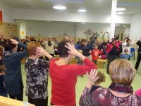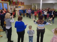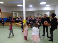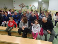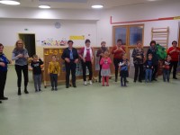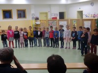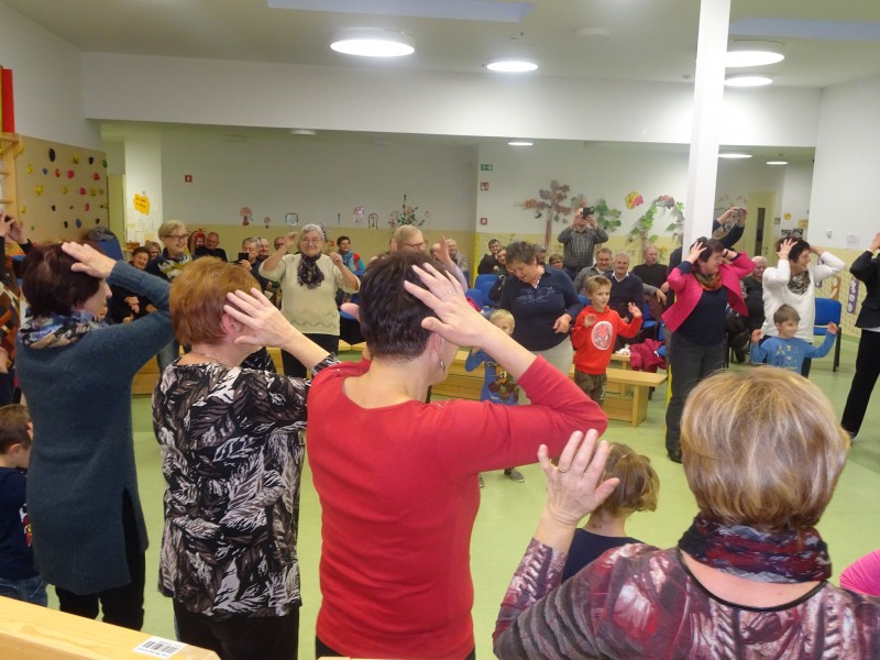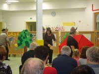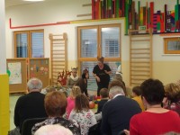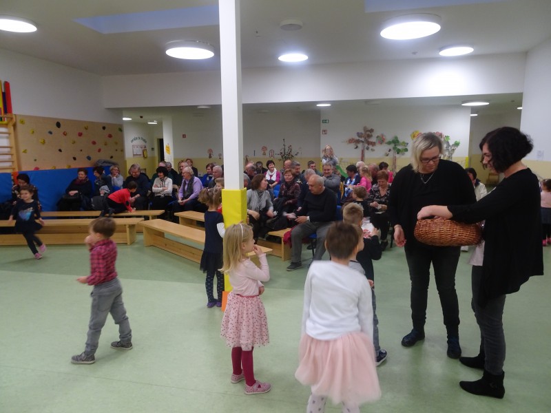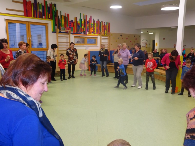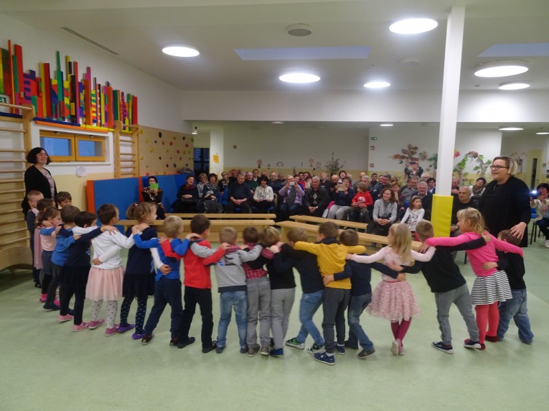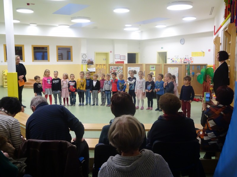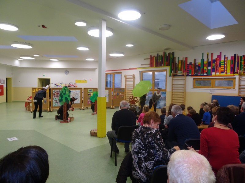 Skupaj smo si ogledali gledališko predstavo Pod medvedovim dežnikom, jim pripravili kratki program in se družili ob plesu, kramljanju in okušanju piškotov, katere smo naredili sami za ta poseben obisk.