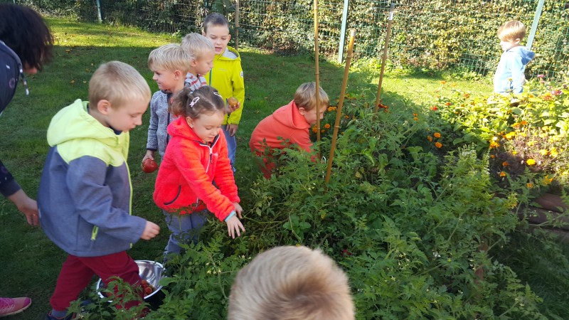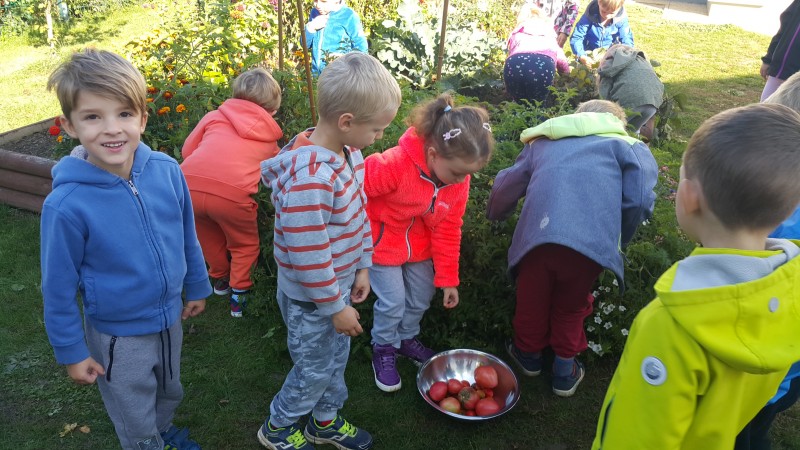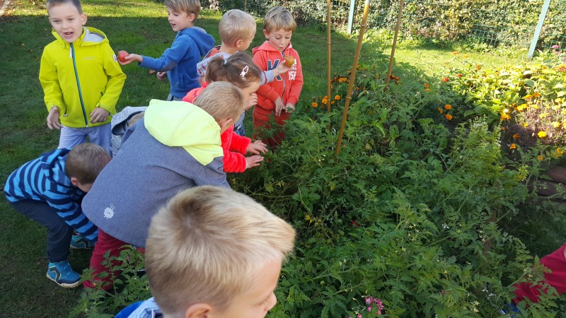 Tudi naš vrt nas je obdaril z različnimi pridelki in okolica vrtca nam ponuja možnosti za različna jesenska opravila. Paradižnik, brokoli, stročji fižol in papriko so otroci pobrali in ga odnesli v kuhinjo, kjer so nam prijazne kuharice pripravile solato. Bila je najboljša in najokusnejša, saj je zrasla na našem vrtu in mi sami smo skrbeli za njo.