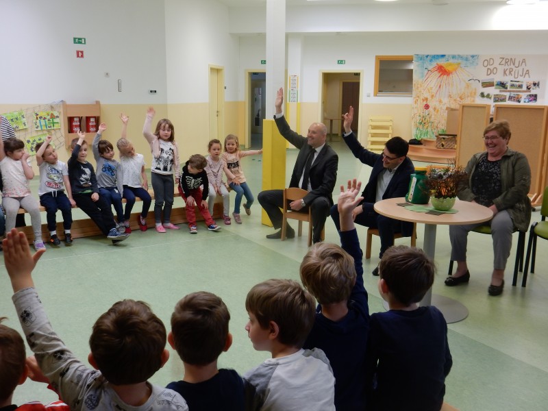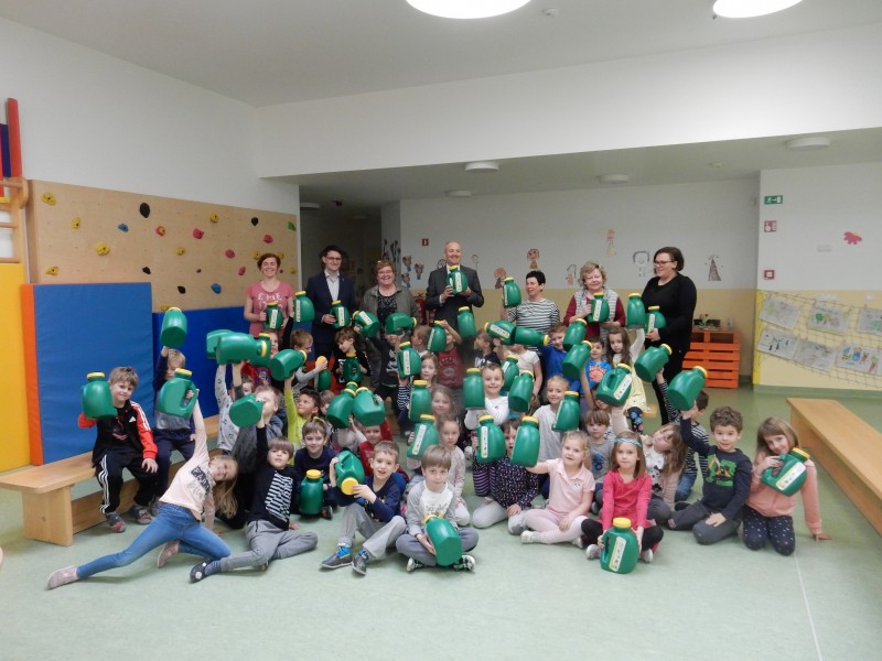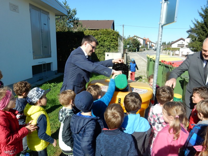 Predšolske otroke je obiskal direktor podjetja Saubermacher – Komunala Murska Sobota d.o.o. Drago Dervarič, ki pa ni prišel le na obisk, ampak je otrokom razdelil posode za zbiranje odpadnega olja za gospodinjstva. Pridružil se nam je tudi podžupan MOMS g. Boštjan Berlak.