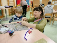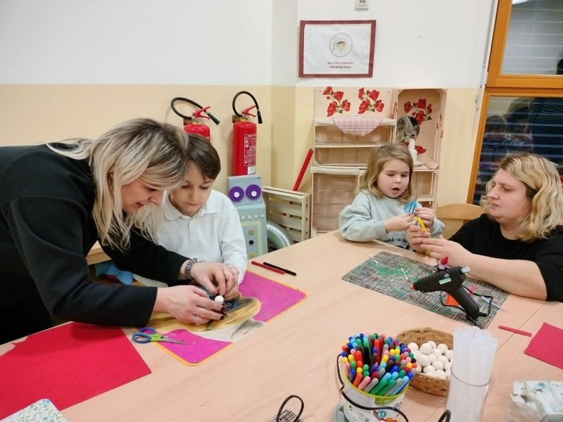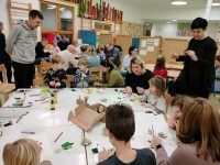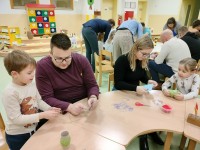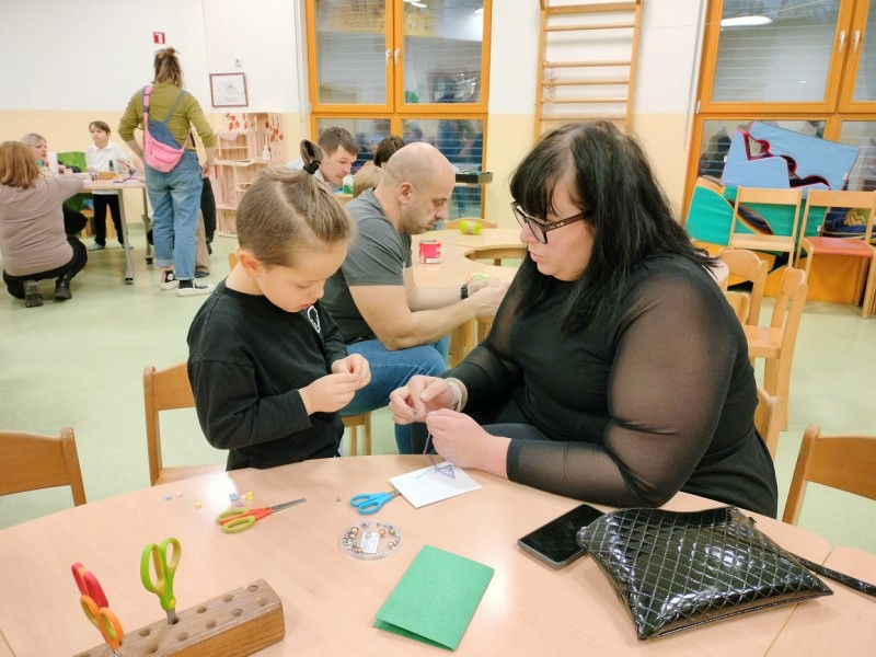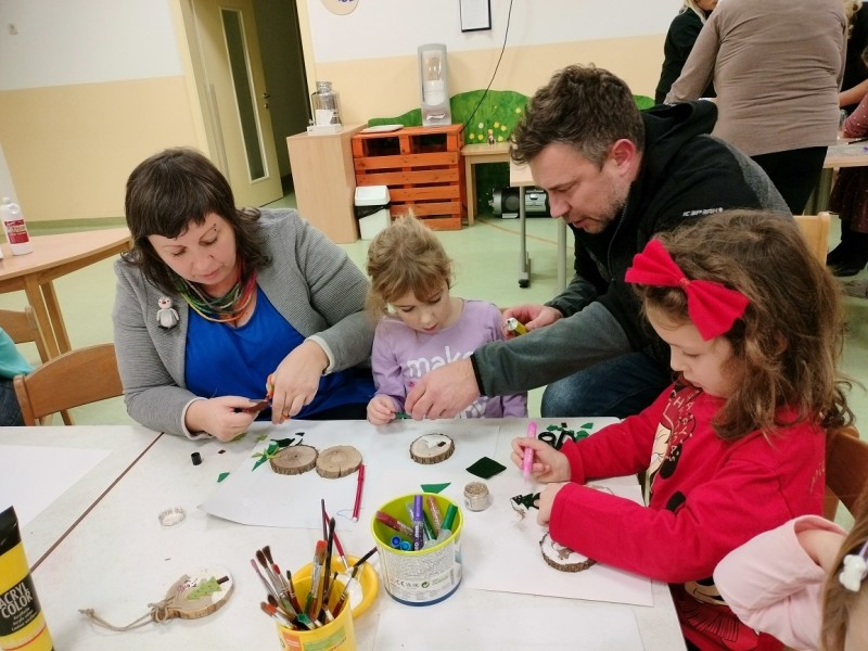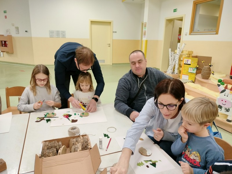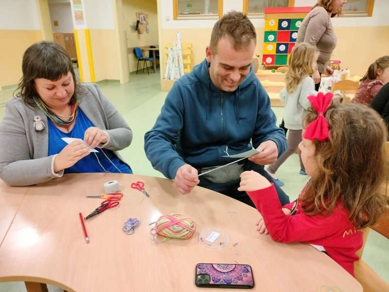 Na praznični delavnici so se nam pridružili starši, ki so skupaj z otroki ustvarjali bleščeče okraske. Vsak okrasek nosi delček družinske ustvarjalnosti in skupnega časa, ki je neprecenljiv. Tako smo skupaj v vrtec prinesli pravo praznično čarobnost.