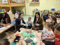 Poleg škrata si je vsak otrok, s pomočjo staršev, izdelal tudi svoj poseben pogrinjek za slavnostno malico, ki nas čaka ob obisku dobrega moža. Barve, bleščice, in smeh so napolnili našo delavnico!