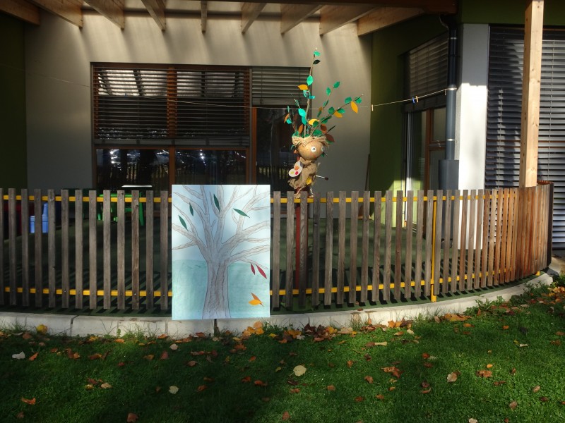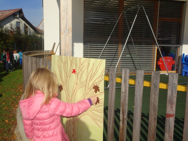 Na našem igrišču nam je botra jesen natrosila liste pisanih barv, različnih oblik in velikosti .
