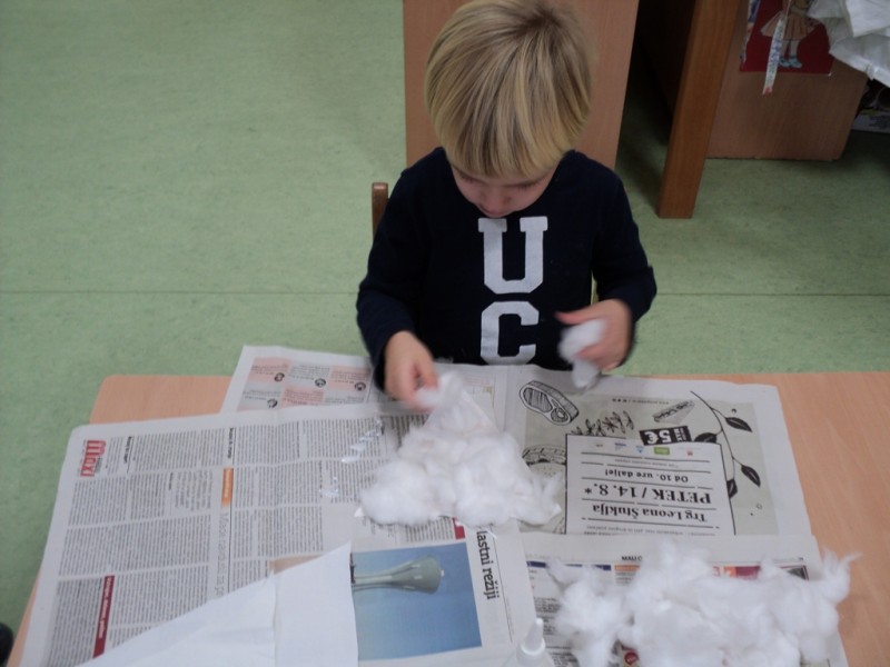 Otroci iz vrtca Gozdiček smo pripravili plesno koreografijo Snežinke. Iz starih majic, katere so otroci prinašali od doma smo si naredili kostume. Na majice smo odtisnili snežinke, naša prijazna šivilja Milena nam je sešila pokrivala. Ples nas je družil in povezal tudi z ostalimi iz našega vrtca, ki so se nam večkrat pri plesu pridružili. Ob tem smo spoznali podrobneje poklic šivilje, prodajalke (kupit smo šli blago za pokrivala) in tudi to, da so stare majice še uporabne. Pred praznično delavnico s starši je sledil naš prvi nastop in naš mini »projekt« se je uspešno zaključil.