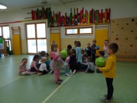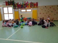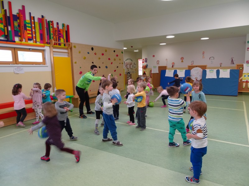 V vrtcu Murska Sobota smo se seznanili z igro, ki se igra z več žogami in celo zaigrali pravo tekmo za Slovenijo. Igrali smo z žogami, s katerimi trenirajo člani slovenske reprezentance in oblekli reprezentančne drese. Za pravila, ki nam jih je razložila Mojca so skrbeli sodniki – vzgojiteljice.