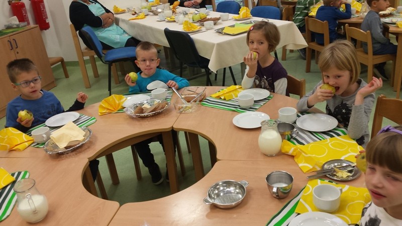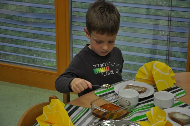 Danes smo v naši enoti skupaj z županom g. Jevškom imeli pravi slovenski zajtrk. Teknila nam je hrana, ki je bila pridelana v našem okolju. Domač kruh iz kmečke peči namazan z maslom in medom nam je bil zelo dober, kakor tudi domače mleko in okusna ter sočna jabolka.
