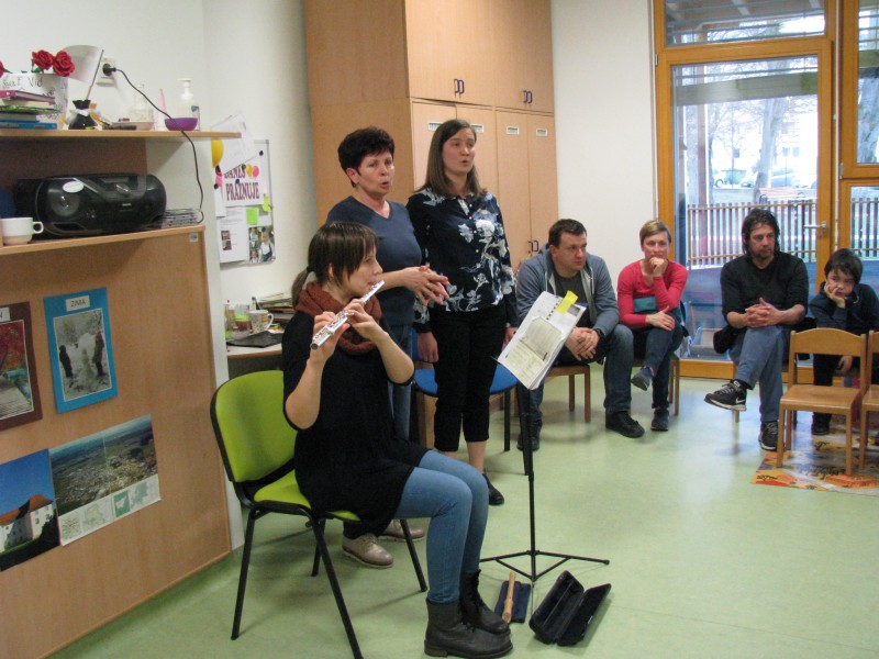 Spoznavali smo instrumente, ob njihovem zvenu pripevali znane pesmi, se učili novo pesmico, nato pa se prepustili ustvarjalnemu izražanju.