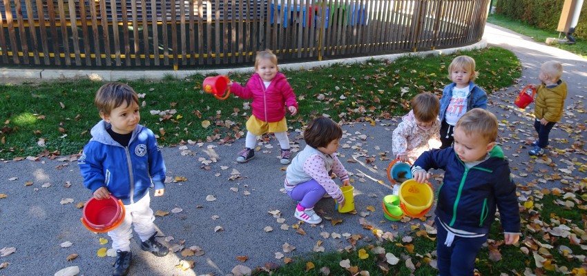 Toplo sonce, rumeno listje in želja po gibanju je tudi nas najmlajše zvabilo na igrišče ...
