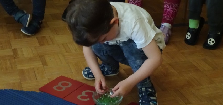 Opazujemo, primerjamo, sestavljamo, prirejamo, preštevamo in opazujemo simbole števil. Gradimo, prelagamo, spoznavamo geometrijska telesa, osnovne ploskve, o...