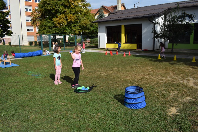 Na dan slovenskega športa smo se spomnili tudi v enoti Miške. Z raznimi športnimi aktivnostmi so otroci preizkušali svoje gibalne sposobnosti.