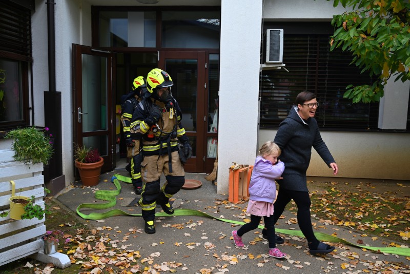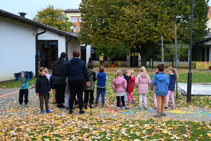 Izvedli smo evakuacijsko vajo. Otroci so se pogumno in odgovorno odzvali na signal za evakuacijo ter pod vodstvom strokovnega osebja uspešno zapustili stavbo.