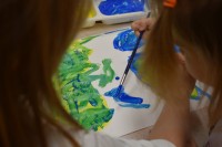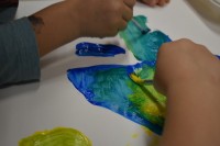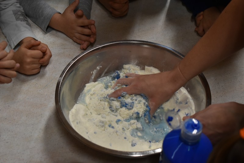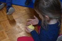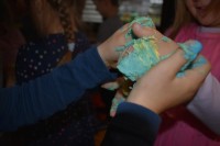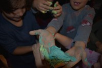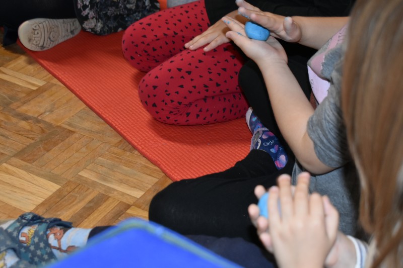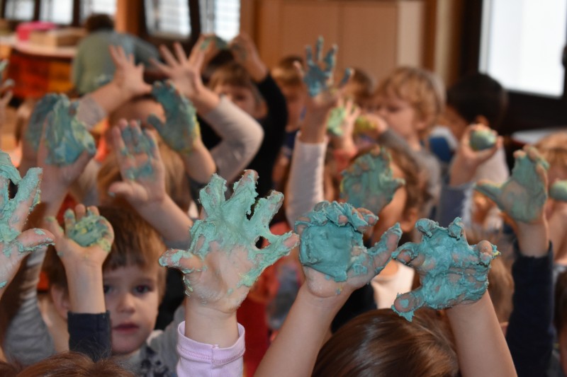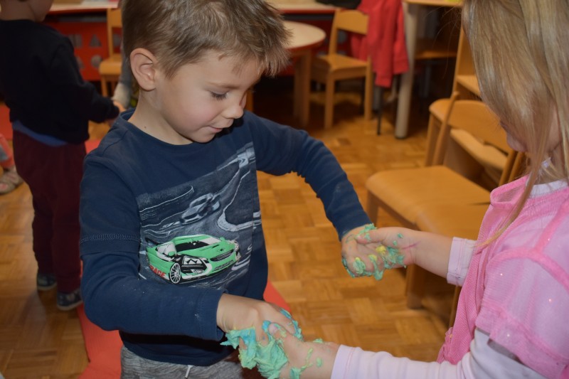 Tako kot v pravljici, sta se skupina modrih in skupina rumenih povezali in ob stisku dlani smo tudi mi postali zeleni.