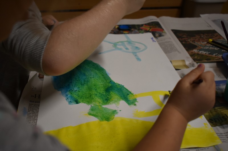 Današnji dan je bil v znamenju dveh najboljših prijateljev, po imenu Mali Modri in Mali Rumeni. Skupaj sta preživela veliko časa, imela sta se zelo rada, tako zelo, da ko sta se nekega dne objela sta oba postala zelena …