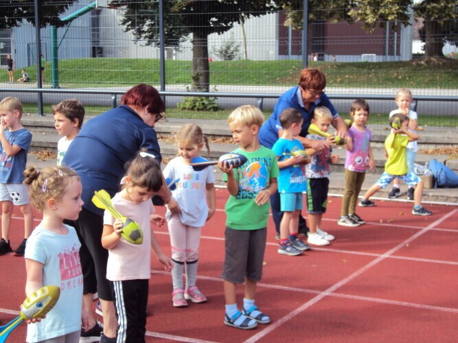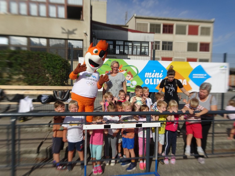 Na Mini olimpijadi smo se seznanili in preizkusili v različnih športnih panogah. Pri tem so nam pomagali Plesna šola Zeko z maskoto Foksi in športna društva iz Murske Sobote: Judo klub Murska Sobota, DŠR sekcija gimnastika, Košarkarski klub Creativ M. Sobota, NŠ Mura, Teniški klub M. Sobota, ZAS Murska Sobota, ki so pripravili atletske izzive. Vseskozi je otroke spodbujal najbolj zagrizen navijač slovenskih športnikov lisjak Foksi.