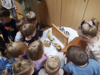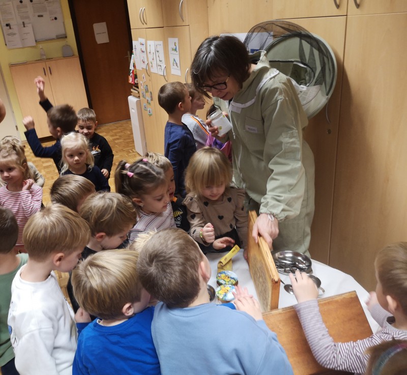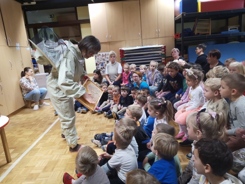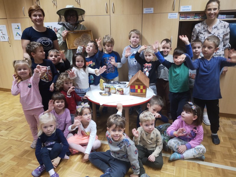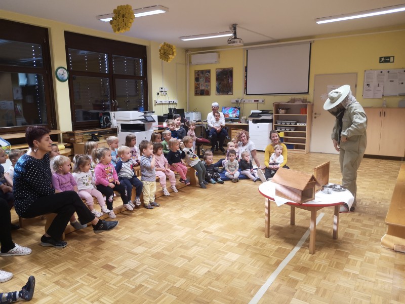 Obiskala nas je čebelarka, ki nam je na zanimiv in prijazen način predstavila življenje čebel. Otroci so si ogledali pravo čebelarsko opremo, spoznali, kako nastane med, ter izvedeli, zakaj so čebele tako pomembne za naravo. Skozi igro in pogovor so se naučili tudi, kako lahko sami pomagamo čebelam. Obisk je bil poučen, sladek in poln navdušenja!