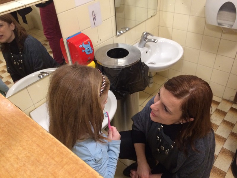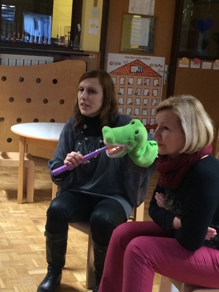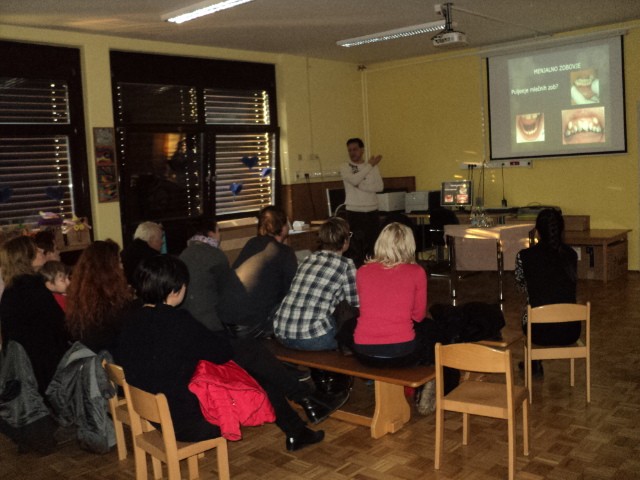 Ker radi skrbimo za zdrave zobe, smo v naš vrtec povabili dr. Egića in medicinski sestri Majo in Andrejo. Zobozdravnik je staršem na prijeten način predstavil skrb za zobe, že od prvega zobka naprej. Medicinski sestri Maja in Andreja sta otrokom medtem zaigrali igrico Zdravi zobki. Ob koncu srečanja sta otroke, skupaj s starši, naučili pravilne tehnike čiščenja zob.