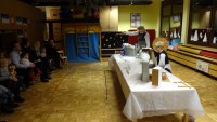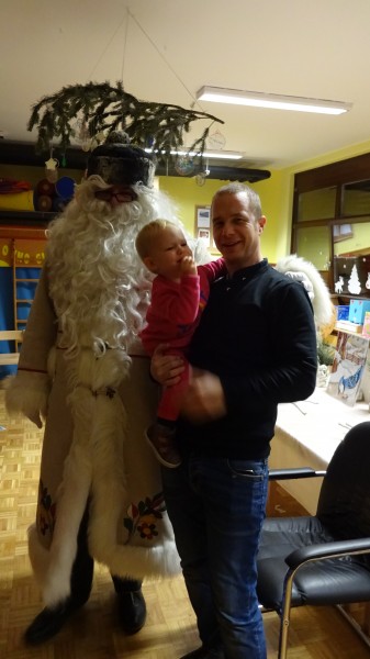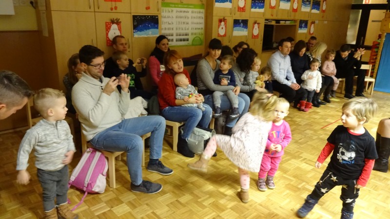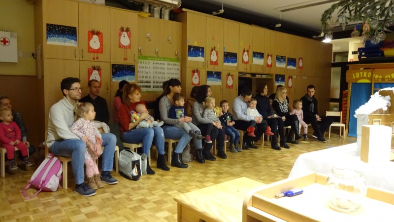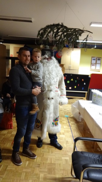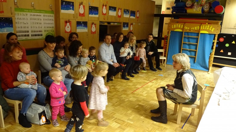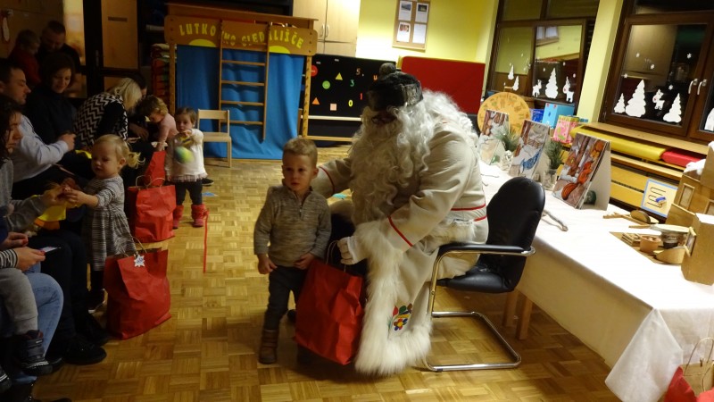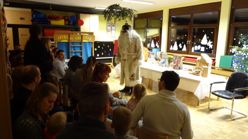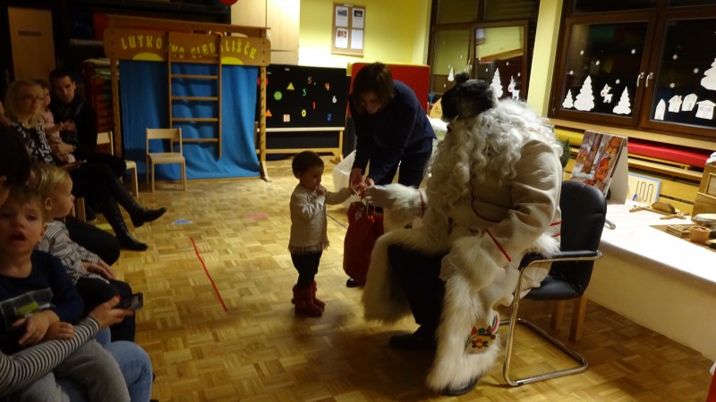 V popoldanskih urah so se otroci in starši vrnili nazaj v vrtec, kajti nestrpno smo čakali prihod dedka Mraza. Da je bil dan še bolj poseben, smo si najprej ogledali lutkovno predstavo Vesel božič mišek Matiček, v izvedbi vzgojiteljice Olge in Renate. Nato smo končno dočakali obisk dedka Mraza, ki je v vrtec prinesel kup dobre volje in pozitivne energije, otrokom pa je na obraz privabil srečne nasmehe. V zameno za naše prepevanje nas je obdaril z darili. Vsi skupaj smo imeli prekrasno popoldne.