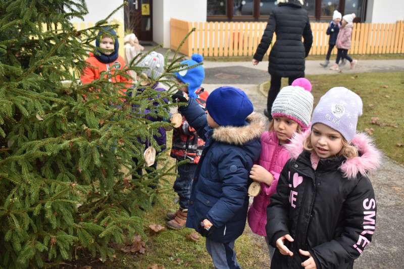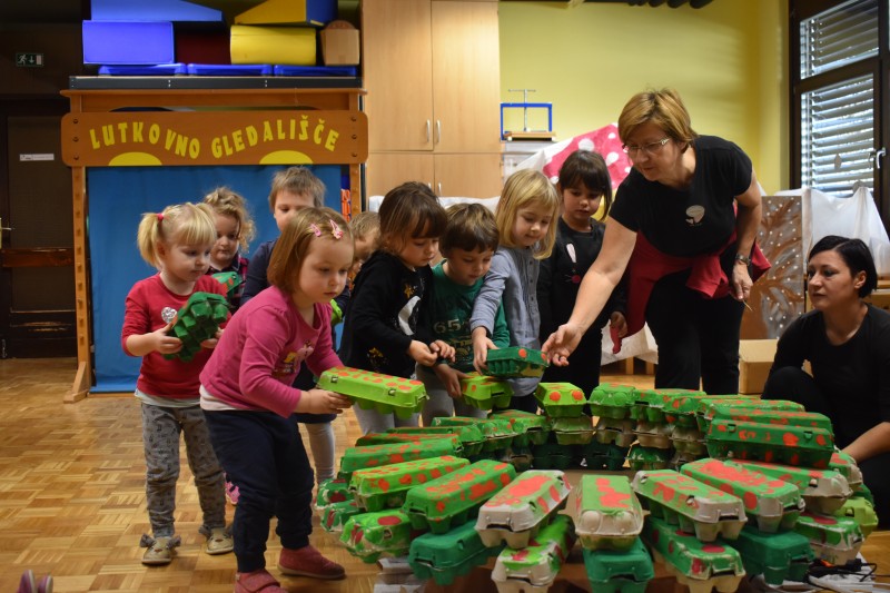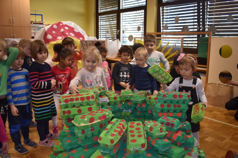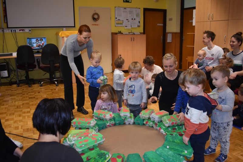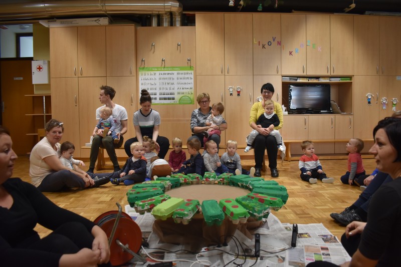 V enoti smo se tokrat odločili, da bomo okraske izdelovali iz odpadnega materiala. Pri okraševanju smo si ob prazničnih pesmi nadeli nasmeh na obraz.