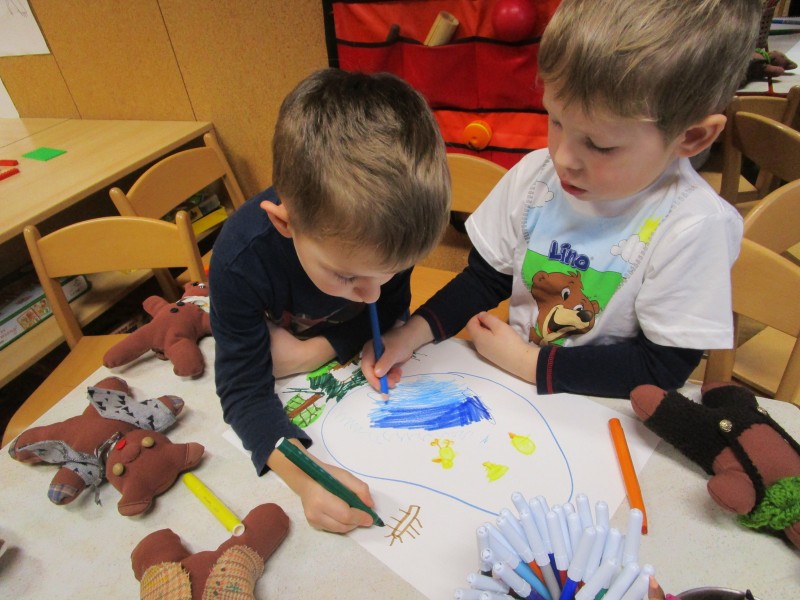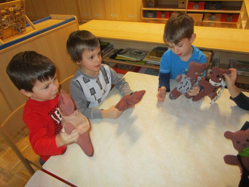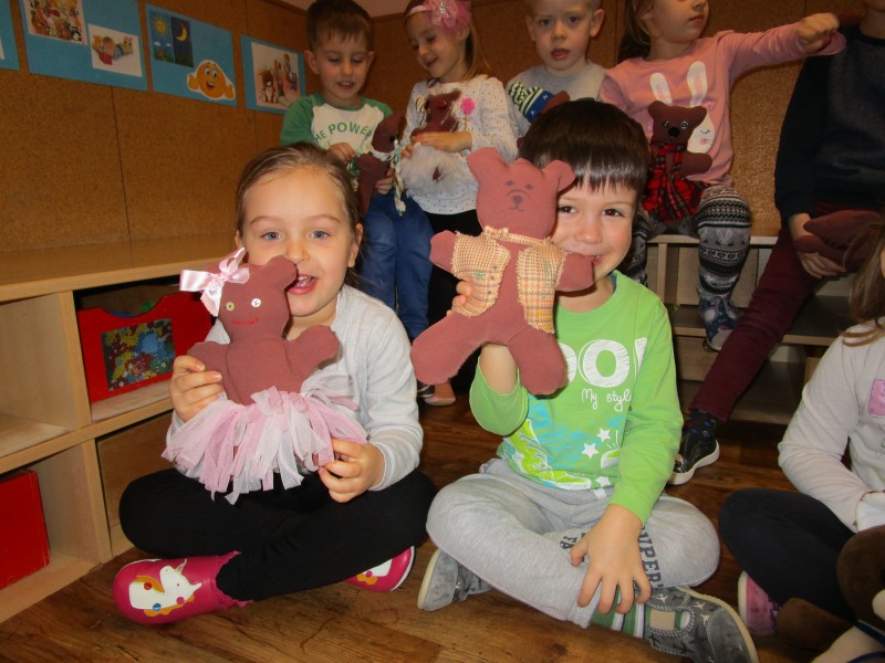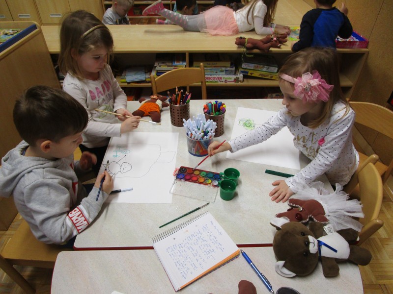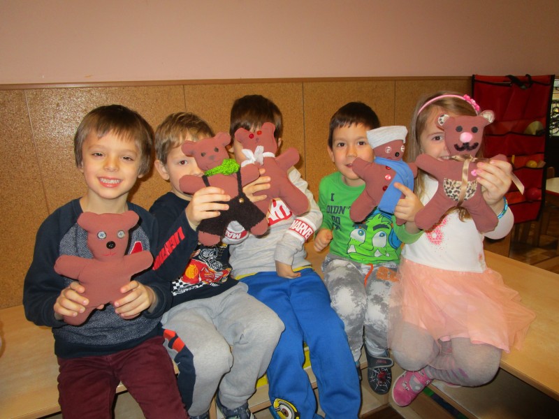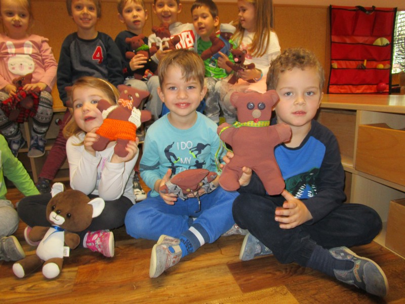 Naši skupini se je pridružil majhen medvedek po imenu Piki Jakob. Preko zgodbic smo spoznavali njegove dogodivščine in se naučili pesmico o njem. Piki pa se nam je pridružil pri vsakodnevnih dejavnostih. Čez čas je postal osamljen, zato so mu otroci skupaj s starši zašili medvedke prijatelje, ki delajo Pikiju družbo v vrtcu.