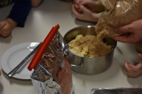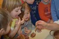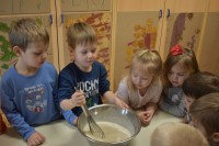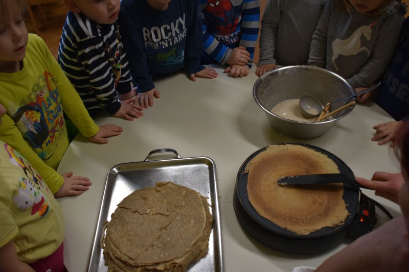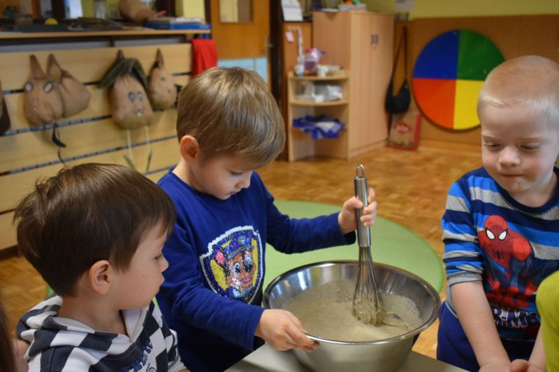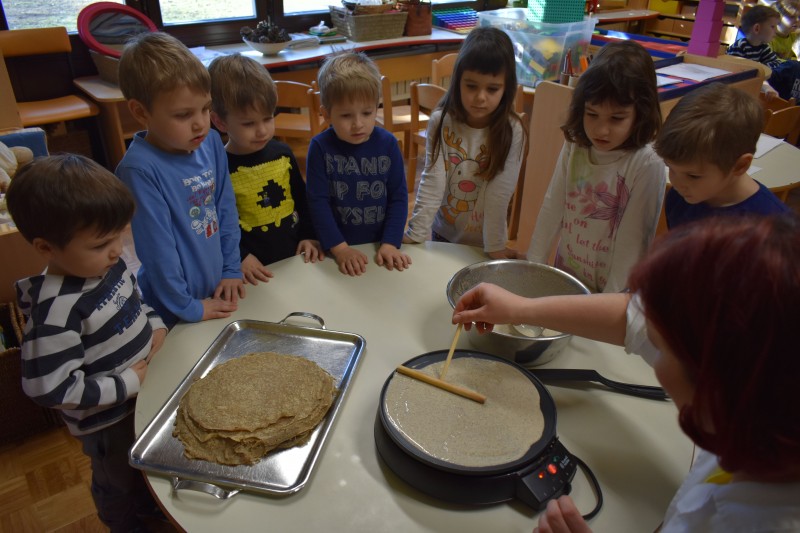 Tako, kot so si živali razdelile lešnik v pravljici »Po čem diši lešnik«, smo si tudi mi v naši skupini razdelili delo in palačinke, s prav posebnim nadevom.