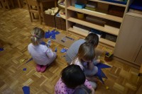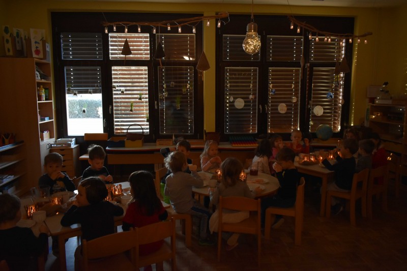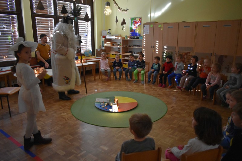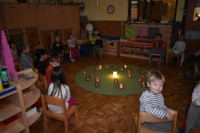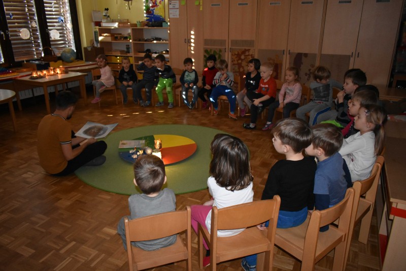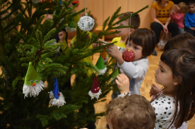 Tako kot je v pravljici dišal lešnik po ljubezni, je v naši igralnici dišalo po praznikih. Živali v pravljici so si razdelile lešnik, mi smo si pa razdelili delo.