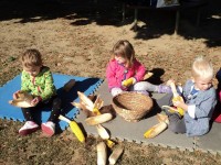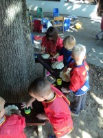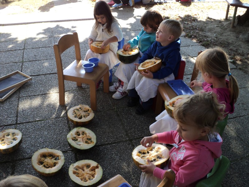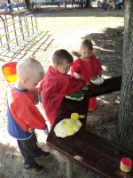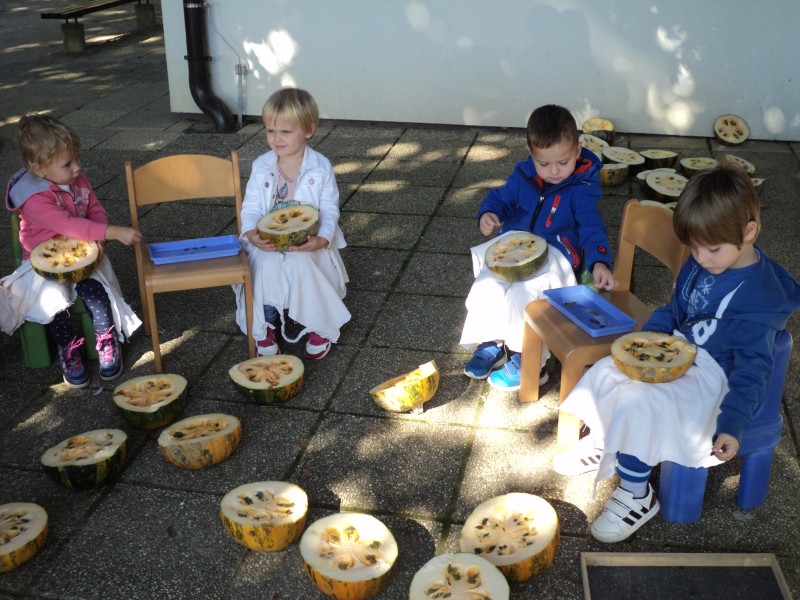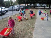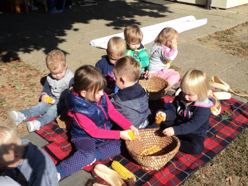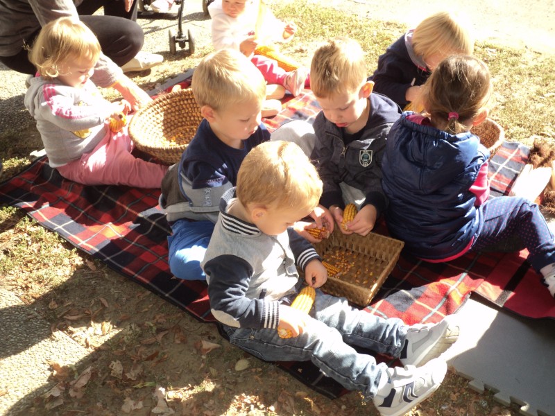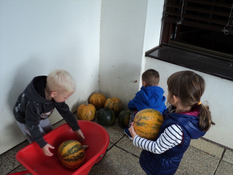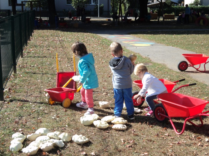 …topli sončni žarki so nas povabili, da smo preko čiščenja, prevažanja in slikanja buč, luščenja koruze ter tiskanja s krompirjem pričarali pisano jesen.