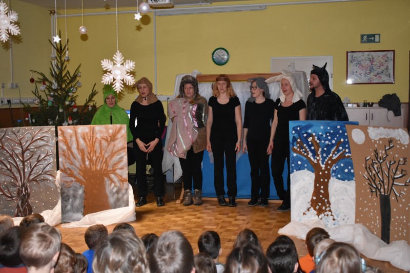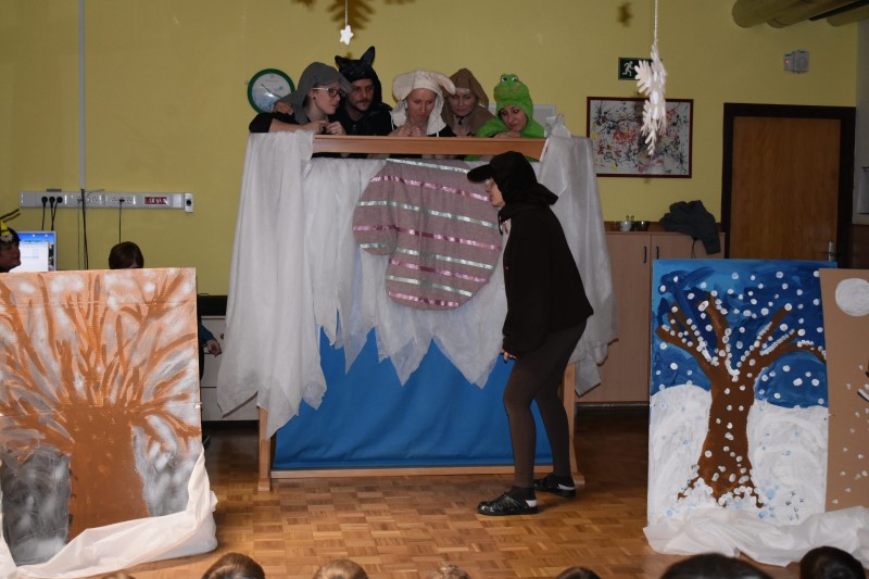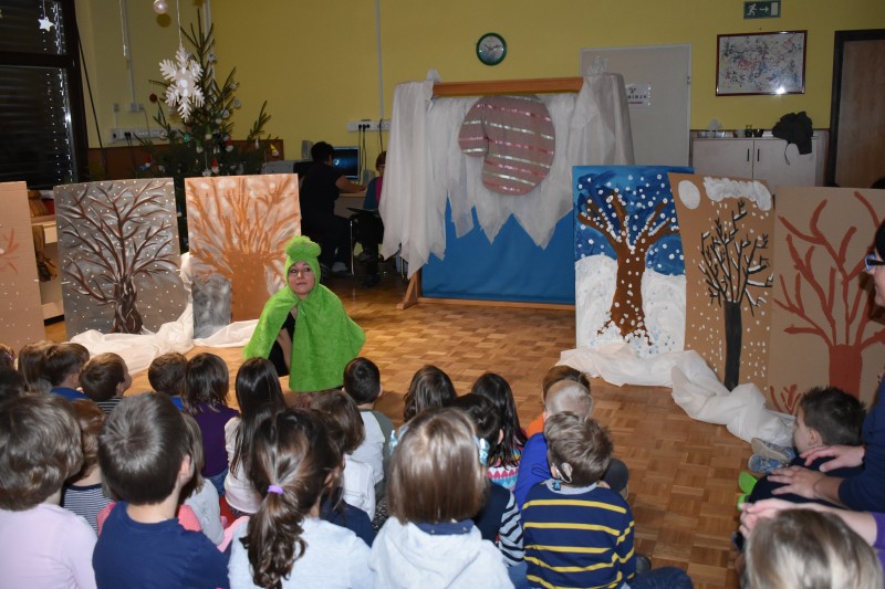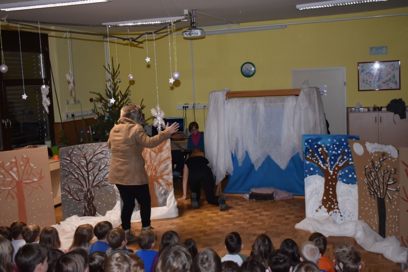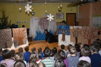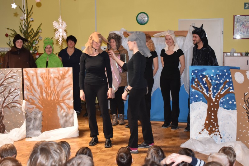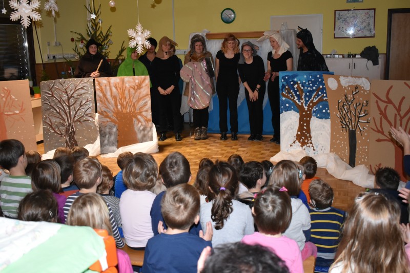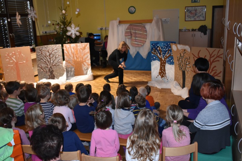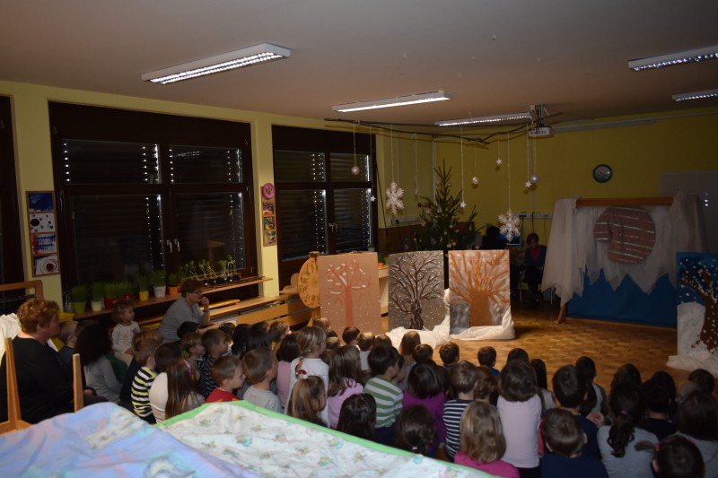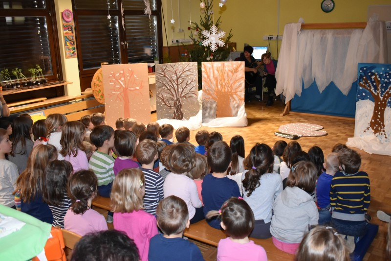 Strokovni delavci naše enote so združili moči in ukrajinsko ljudsko pravljico otrokom predstavili v obliki glasbene pravljice. S petjem in slušnim zaznavanjem so otroci spoznavali živali, ki so se sredi hude zime znašle v gozdu in se v iskanju zavetja družile in grele v rokavički, vse dokler …