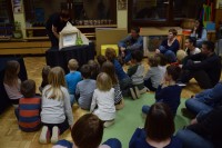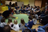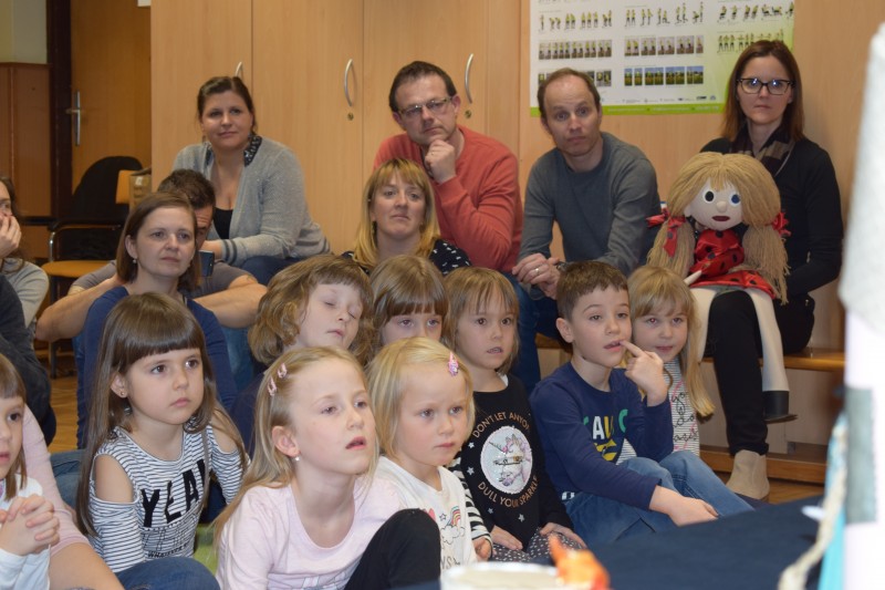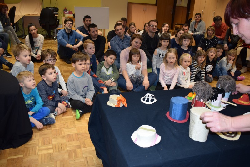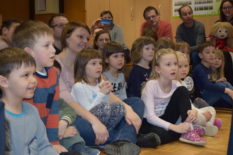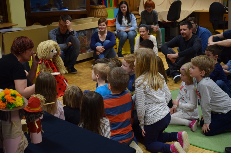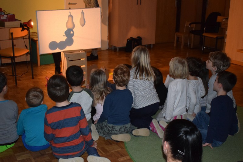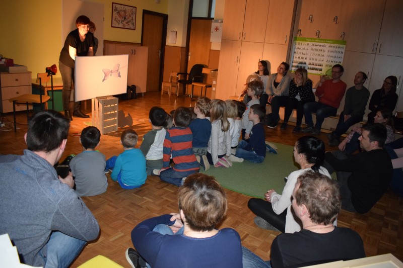 Najprej smo si na preprogi ogledali predstavo Rokavička in tako spoznali prstne lutke. Nato nam je Maruška predstavila nošene lutke v predstavi Moj dežnik je lahko balon. Najbolj posebno je bilo japonsko gledališče Kamišibaj (jap. kami: papir, šibaj: gledališče), v katerem smo preko zgodbice Zaljubljeni žabec spoznali plosko lutko. Zadnja predstava je bila otrokom in staršem najbolj zanimiva, saj smo si jo ogledali v temi. S senčnim gledališčem, smo se seznanili ob zgodbici Zelo lačna gosenica.