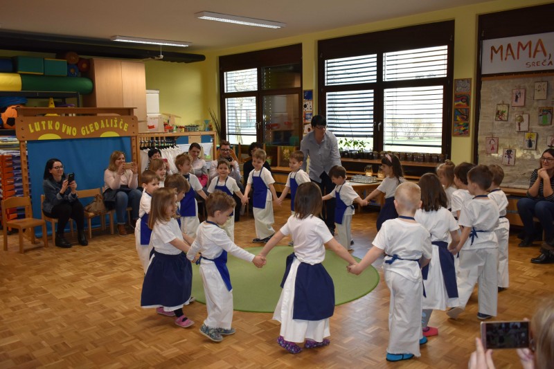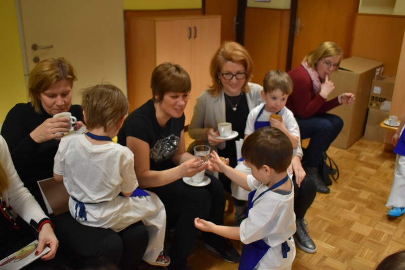 Danes je svoja vrata odprla prav posebna kavarna, za posebne goste. V »Vrtčevski Kavarni« smo danes gostili mame, ki so prisluhnile našim mislim in pesmim ter si ogledale ljudski ples in razstavo slik na temo Moja mama. In kot se za pravo kavarno spodobi smo jih pogostili tudi s kavo in v vrtcu pripravljenimi muffini.