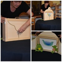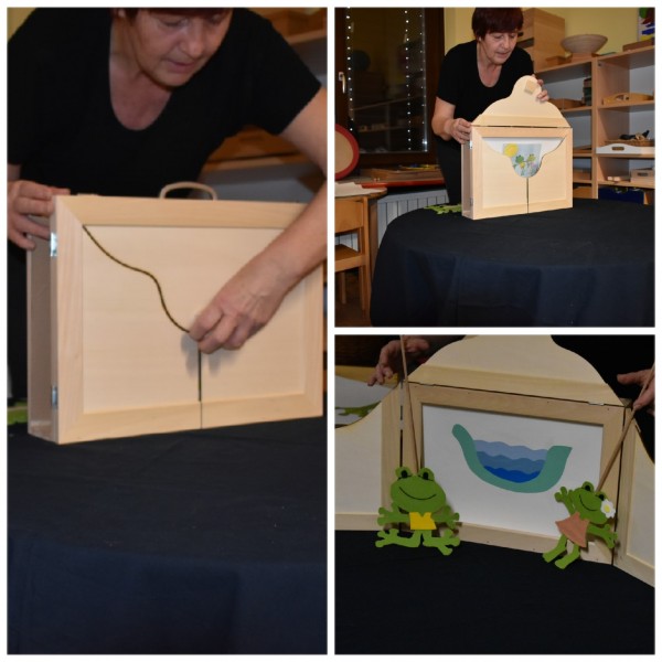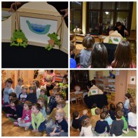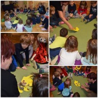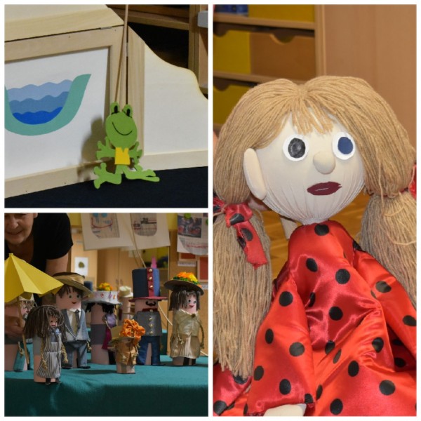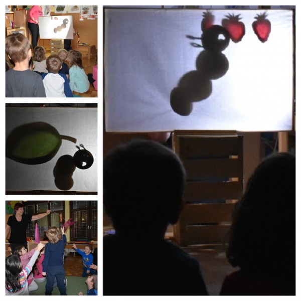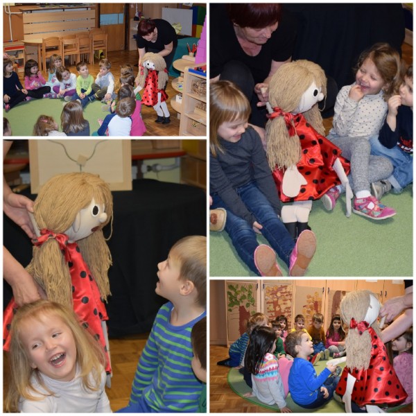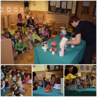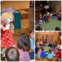 Z animacijo vzgojiteljice Metke Kotar so lutke v mini gledališčih oživele in otrokom uprizorile nepozabne lutkovne predstave. Maruška nas je najprej popeljala v najmanjše gledališče na preprogi, kjer smo si ogledali predstavo Rokavička in spoznali prstne lutke. V naslednjem, namiznem gledališču smo z Maruško spoznavali nošene lutke in občudovali deželo klobučarijo, v predstavi Moj dežnik je lahko balon. Najbolj nenavadno, a hkrati posebno je bilo japonsko gledališče Kamišibaj (sl. papirnato gledališče), zgodbica o zaljubljenem žabcu se je skrivala za vrati lesene škatlice, Maruška pa nas je seznanila s plosko lutko. Zadnjo predstavo smo si ogledali v temi, prepustili smo se svetlobnim dražljajem senčnega gledališča ob zgodbici Zelo lačna gosenica, ob koncu katere je izza platna priletel tudi metulj …