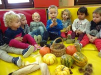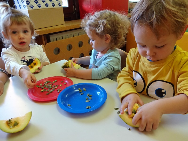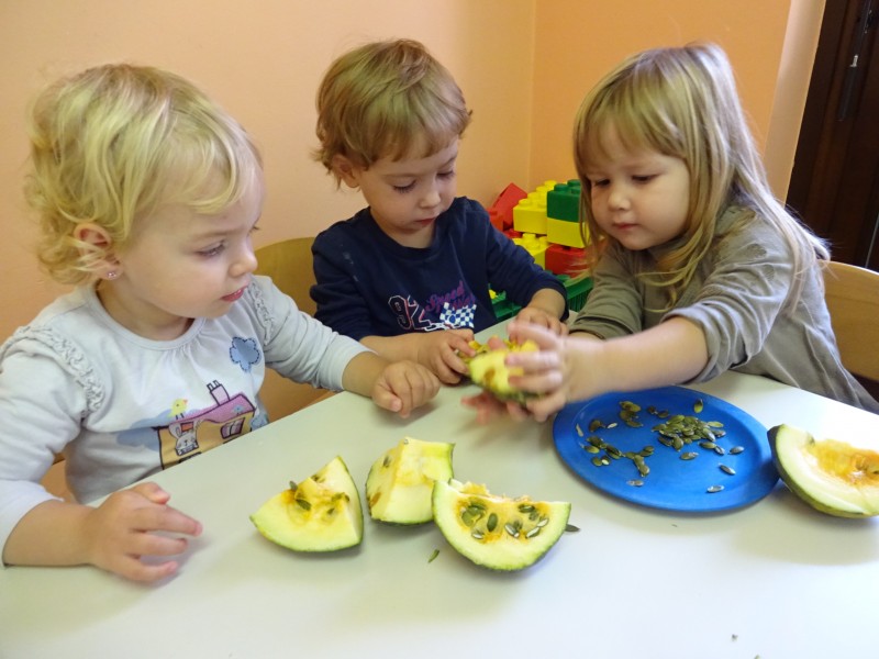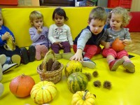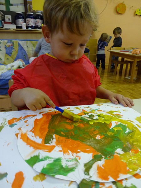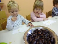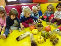 Ustvarjali z barvami in naravnim materialom, čistili buče, luščili koruzo, okušali kuhan kostanj, ter se sladkali s hruškami, jabolki in grozdjem.
