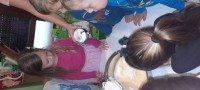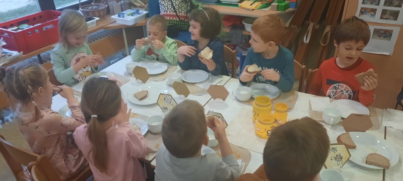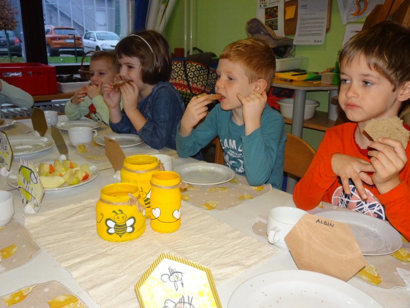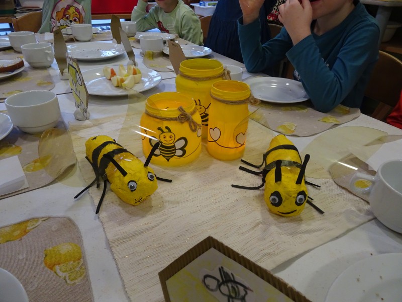 Otroci čebele povezujejo z nekaj negativnim, z bolečino. Zato smo v skupini podrobneje spoznali čebele. Dotaknili smo se vseh področij od razvoja čebele, njenega življenskega prostora, njenih sovražnikov, v sklopu tradicionalnega zajtrka nas je obiskal tudi čebelar. Prebirali smo različno literaturo, si ogledali posnetke o čebelah, plesali ob glasbi o čebelah ter prepevali pesmice o čebelah. Spekli smo si tudi medeno rolado, okušali med, izdelali smo čebelnjak in naše znanje o čebelah preverili v kvizu. Kaj pa bomo sami prispevali , da ohranimo čebele? Spomladi bomo na našem vrtu posadili cvetlice, da bodo lahko čebele opraševale in nabirale cvetni prah.