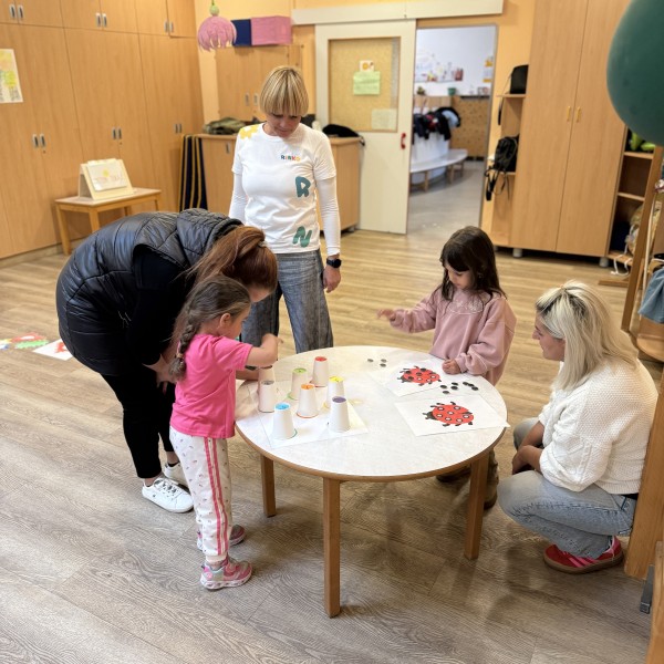 V okviru projekta RINKO - temeljna znanja računalništva in informatike - brez uporabe zaslonov, sta inovativni oddelek enota Ringa Raja in Romano pripravila popoldansko delavnico za družine vključenih otrok v vrtec. Ogledali so si mini gledališče z naslovom PRITISNI TUKAJ!, se seznanili z igro socialnih interakcij ter izvajali aktivnosti v okviru 2. mavričnega tedna.
