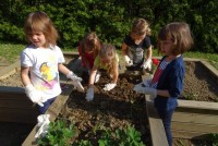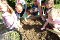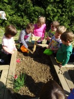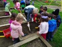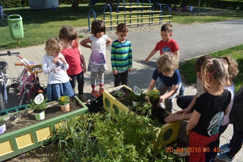 Ob dnevu ZEMLJE smo pripravili kulturni program, izobesili EKO zastavo, zapeli EKO himno, uredili cvetlične in visoke gredice, posejali in posadili zelišča, rože, zelenjavo. Ob vsem tem so otroci uživali, naklonjeno nam je bilo tudi lepo sončno vreme. Zdaj že nestrpno čakamo, da bodo semena vzklila, sadike zrasle in rože zacvetele.