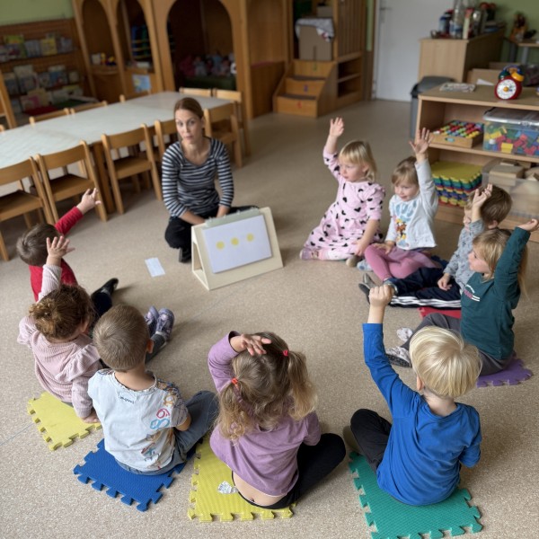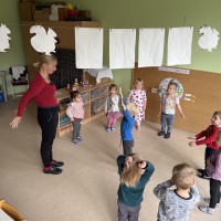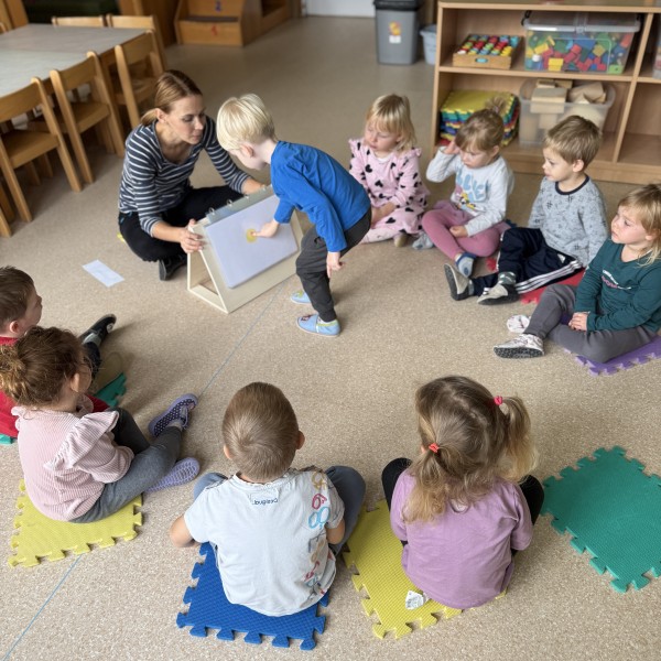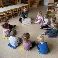 5. Dan: Za zaključek Mavričnega tedna so si otroci ogledali predstavo mini gledališča z naslovom PRITISNI TUKAJ! Seznanili so z učinki računalništva in informatike v povezavi s socialnimi interakcijami in ustvarili glasbeni vzorec s pomočjo lastnih instrumentov v določenem zaporedju z ponovitvami.
