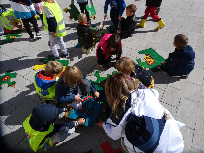 Podrobneje smo spoznali tudi delo mestnega redarja, ter se preizkusili v  sestavljanju velikih puzlov.