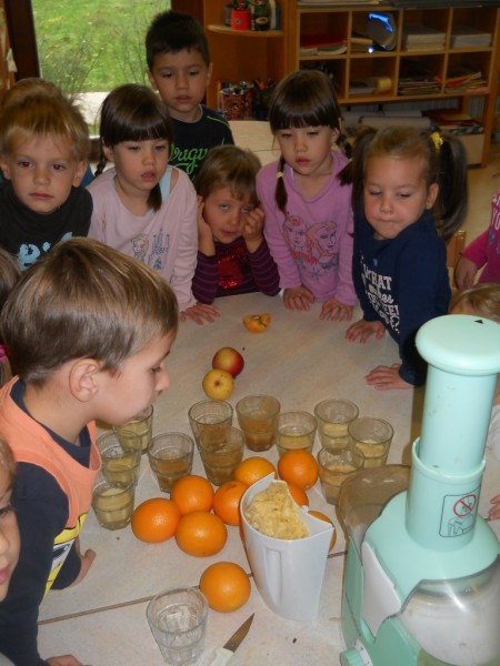 Ne maram banane, ne maram jabolka…so premnogi odgovori otrok na naša ponujanja sadja. Prav zaradi tega smo se odločili vse te »vitamine« prenesti v naše telo v drugačni otrokom bolj zanimivi obliki. Otroci so med pripravo vneto pomagali, komentirali in se veselili poizkušanja. Vsak pripravljen napitek je bil popit do dna. Na zdravje.