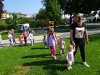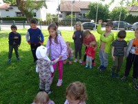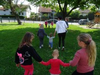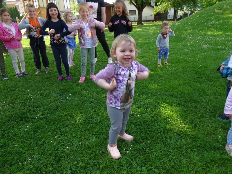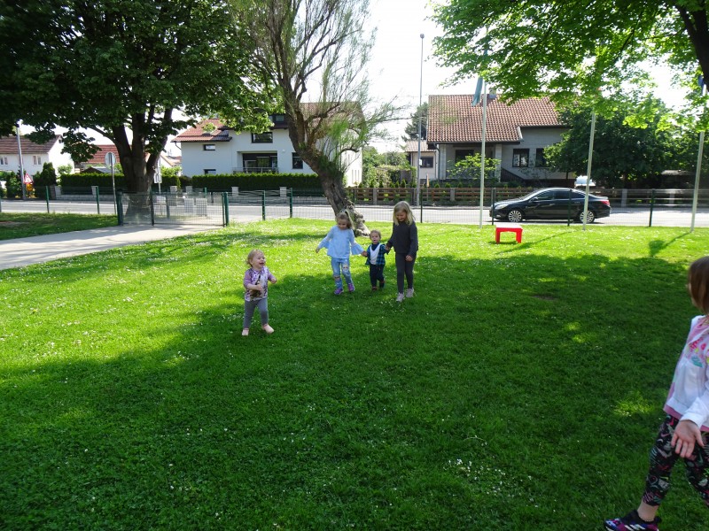 Otroci najmlajše skupine smo dan preživeli v družbi najstarejših otrok, ki so nas popeljali v svet športa na igrišču vrtca in nam pomagali, da smo pretekli prvih nekaj metrov.
