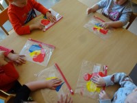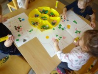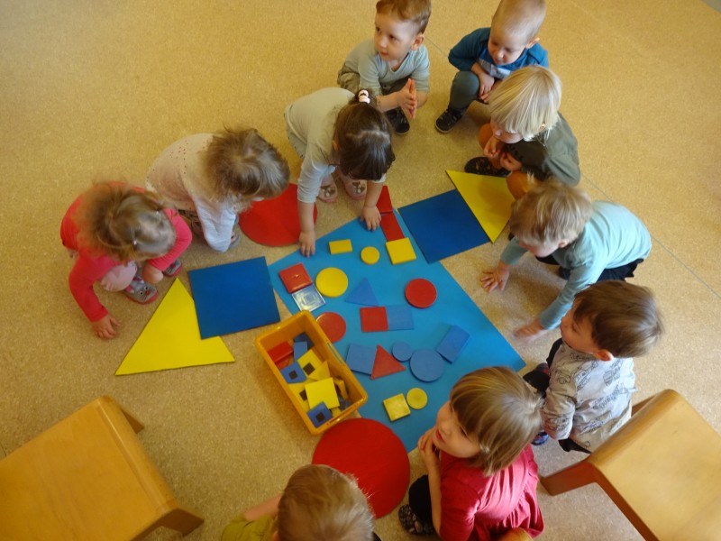 Ena izmed dejavnosti, ki smo jih izvajali v oddelku in kjer smo razvijali matematično pismenost, je bila tema SVET BARV IN LIKOV. Preko eksperimentiranja, raziskovanja, igre, aktivne vključenosti in opazovanja smo spoznavali osnovne barve in like.