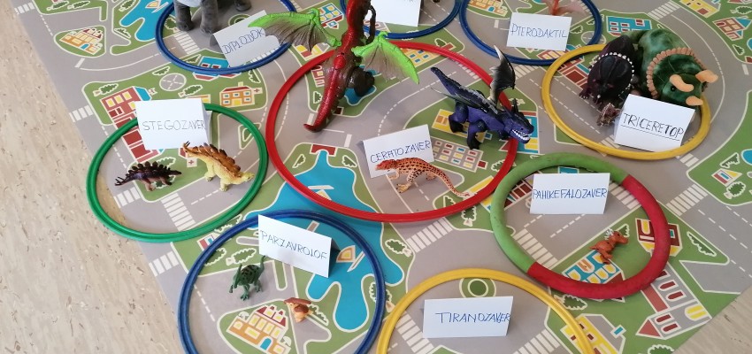V oddelku 3-4 let smo se  odločili, da se bomo pogovarjali o dinozavrih in tako izhajali iz interesa in želje otrok. Ob sodelovanju s starši smo zbrali več razl...