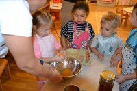 V vrtcu smo skozi teden spoznavali tradicionalni slovenski zajtrk in njegove sestavine. Otroci so raziskovali med, kruh, maslo, mleko in jabolka ter hkrati spoznavali in urili svoja čutila. Na koncu pa smo še iz tradicionalnih slovenskih sestavin spekli slastne mufine.