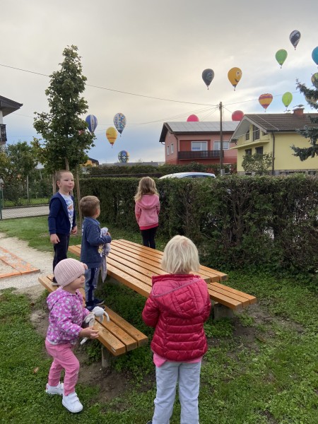 Svetovno prvenstvo v letenju s toplozračnimi baloni v Murski Soboti je v polnem teku in danes so si ga ogledali tudi malčki, saj so v zgodnjih jutranjih urah preleteli tudi našo enoto Srnico. Veselje je bilo nepopisno.