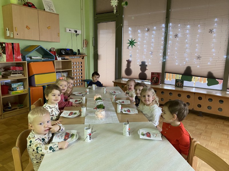 V vrtcu smo preživeli čaroben december, poln radovednosti, igre in prazničnega vzdušja. Otroci so ustvarjali pisane okraske, pekli piškote, izražali svojo domišljijo ob pripovedovanju zimskih zgodb ter skupaj prepevali božične pesmi. Dneve pa so nam še dodatno popestrili učenci iz glasbene šole, pravljičarka Tatjana in vzgojiteljica Renata s čudovito predstavo "Zajčkova hišica". Skozi njihovo umetniško izražanje smo doživeli še večjo čarobnost decembrskega časa.